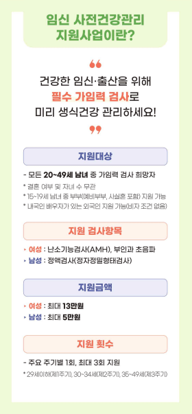가임력 검사비 지원은 정부에서 시행하는 임신 사전 건강관리 지원 사업입니다. 이 제도는 예비 부모들이 가임력 상태를 미리 파악하여 건강한 임신과 출산을 준비할 수 있도록 돕는 중요한 정책입니다.