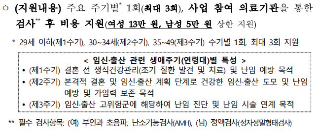 · AMH(난소기능검사): 최대 7만 원 지원