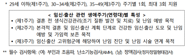 가임력 검사비 지원은 총 3회까지 받을 수 있으며, 연령대에 따라 구분됩니다.