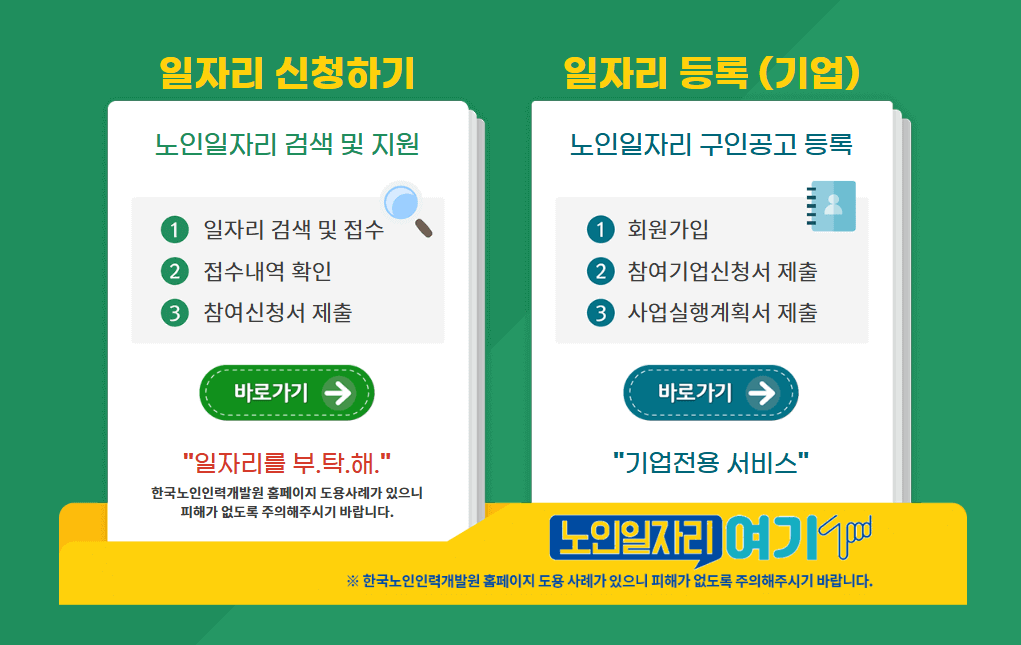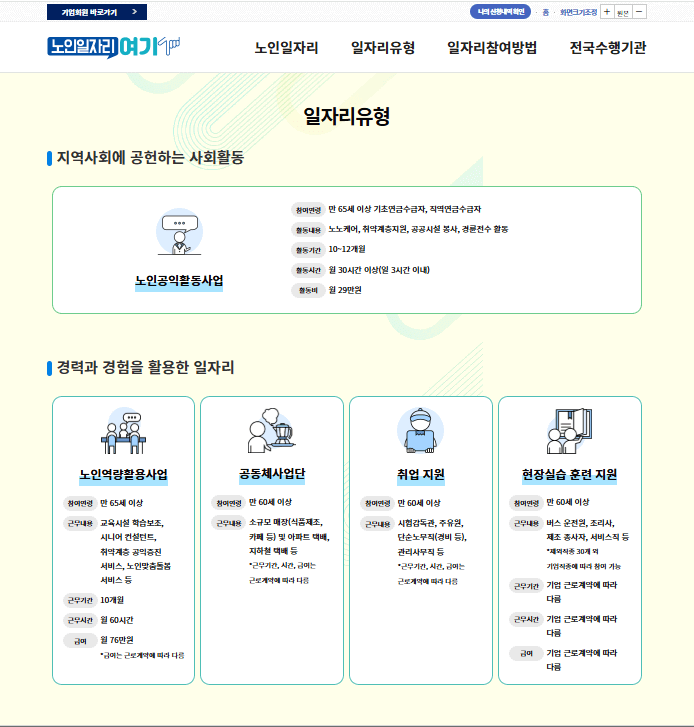 · 노인일자리 여기: https://www.seniorro.or.kr:4431/noin/main.do